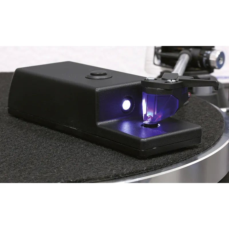 Ved hjelp av høyfrekvente vibrasjoner fjernes støv, smuss og mikropartikler fra stiften uten mekanisk børsting. Dette reduserer risikoen for skader på den sensitive diamantnålen sammenlignet med tradisjonelle rensemetoder. Medfølgende rensevæske bidrar til ekstra effektiv rens ved behov.
